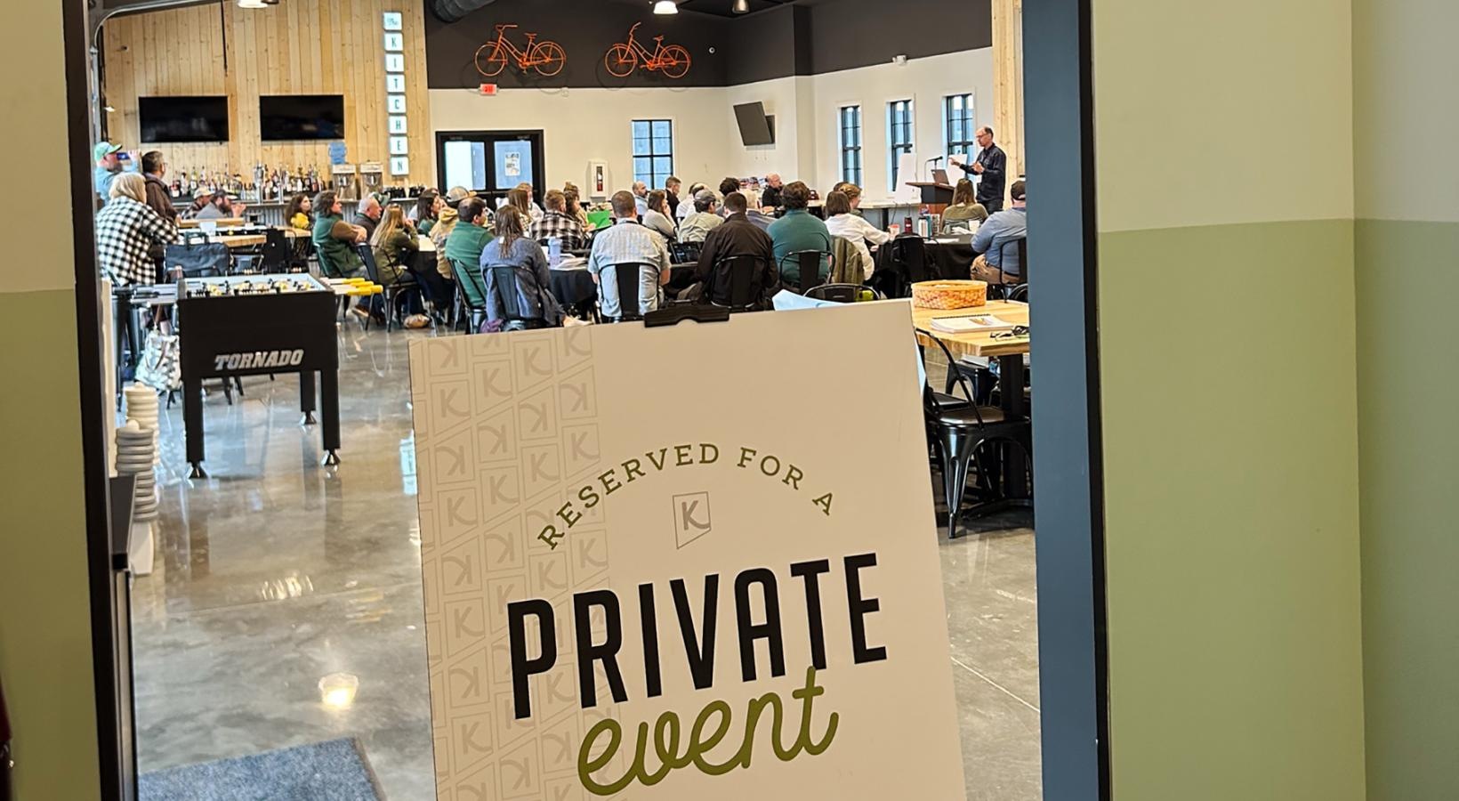 • a sign in a building leading to an event space