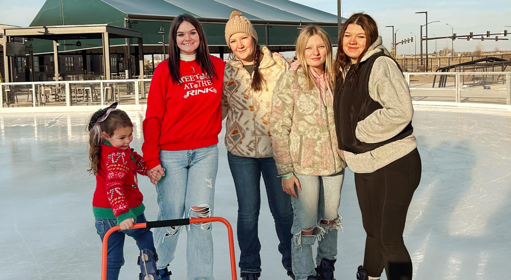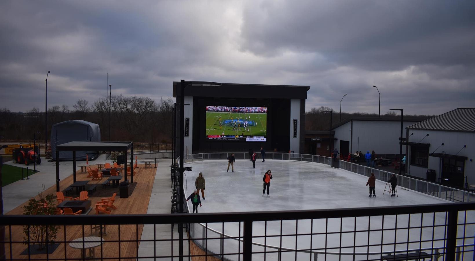 • a group of people skating on an outdoor ice rink