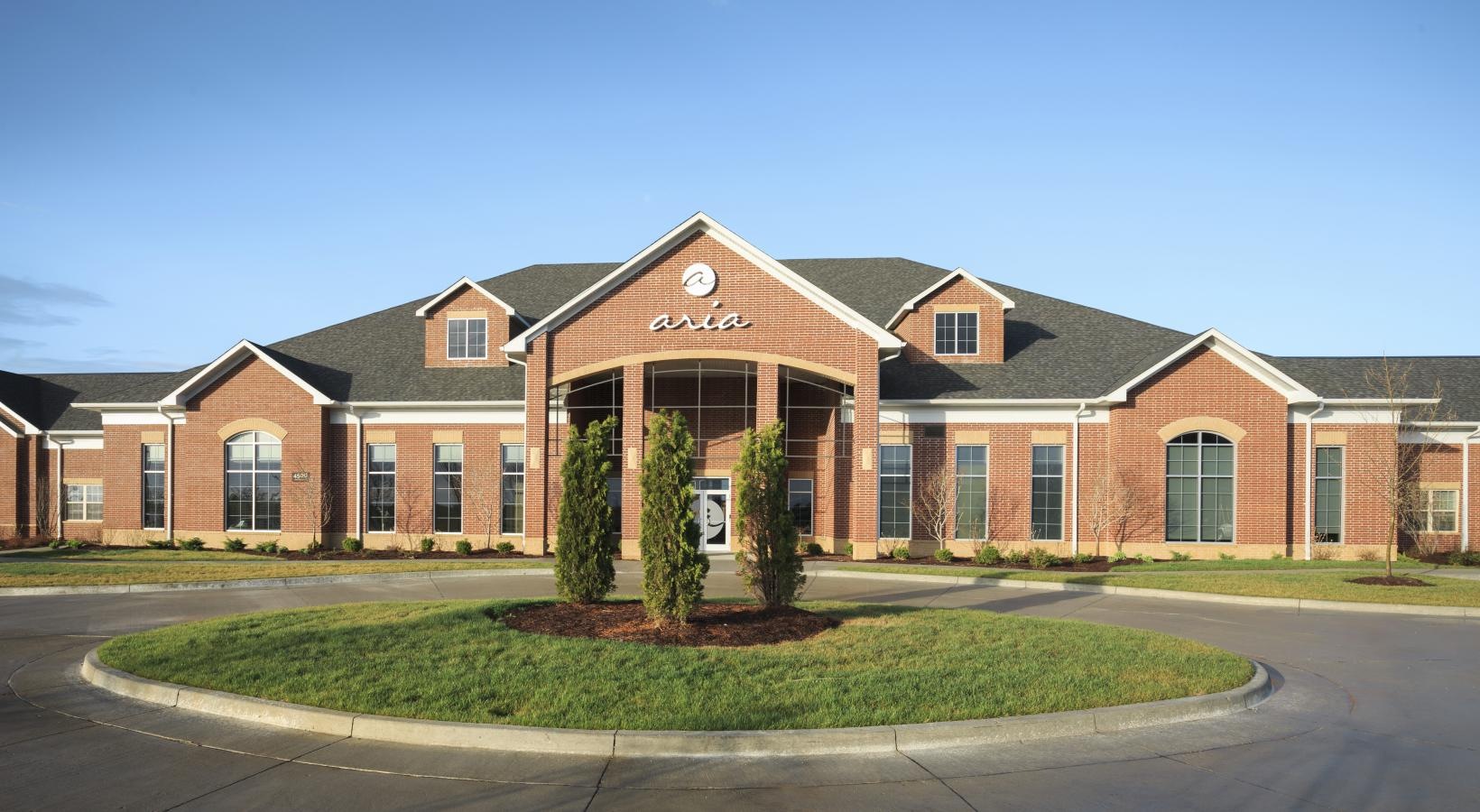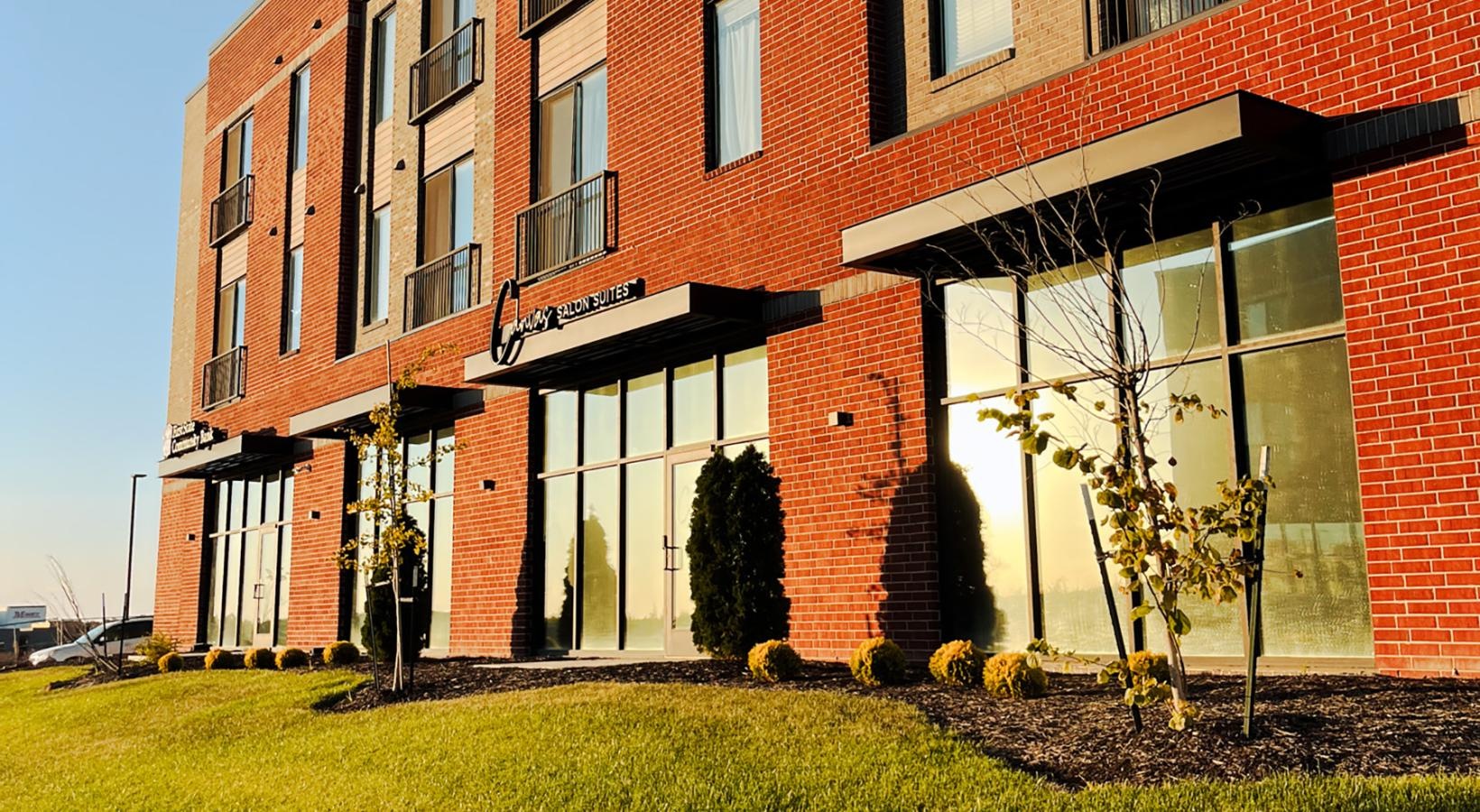 • a building with a lawn in front