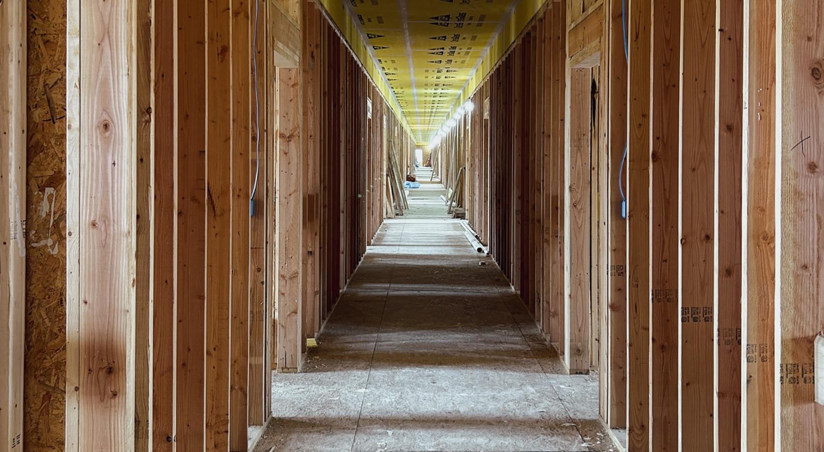 • a long hallway under construction