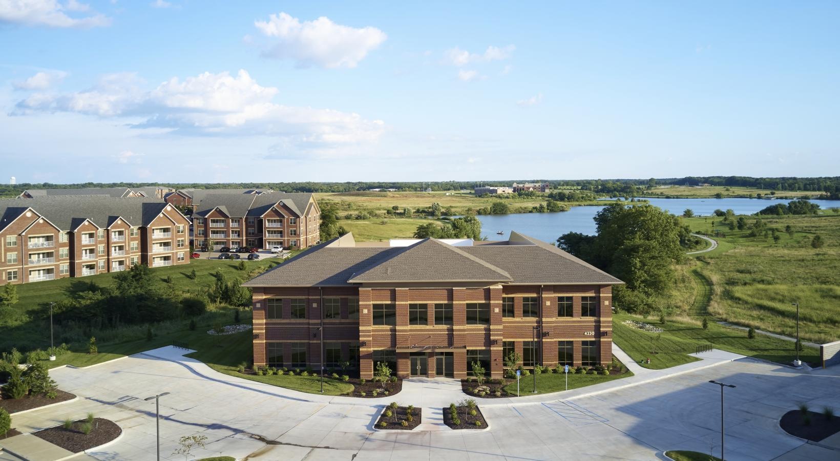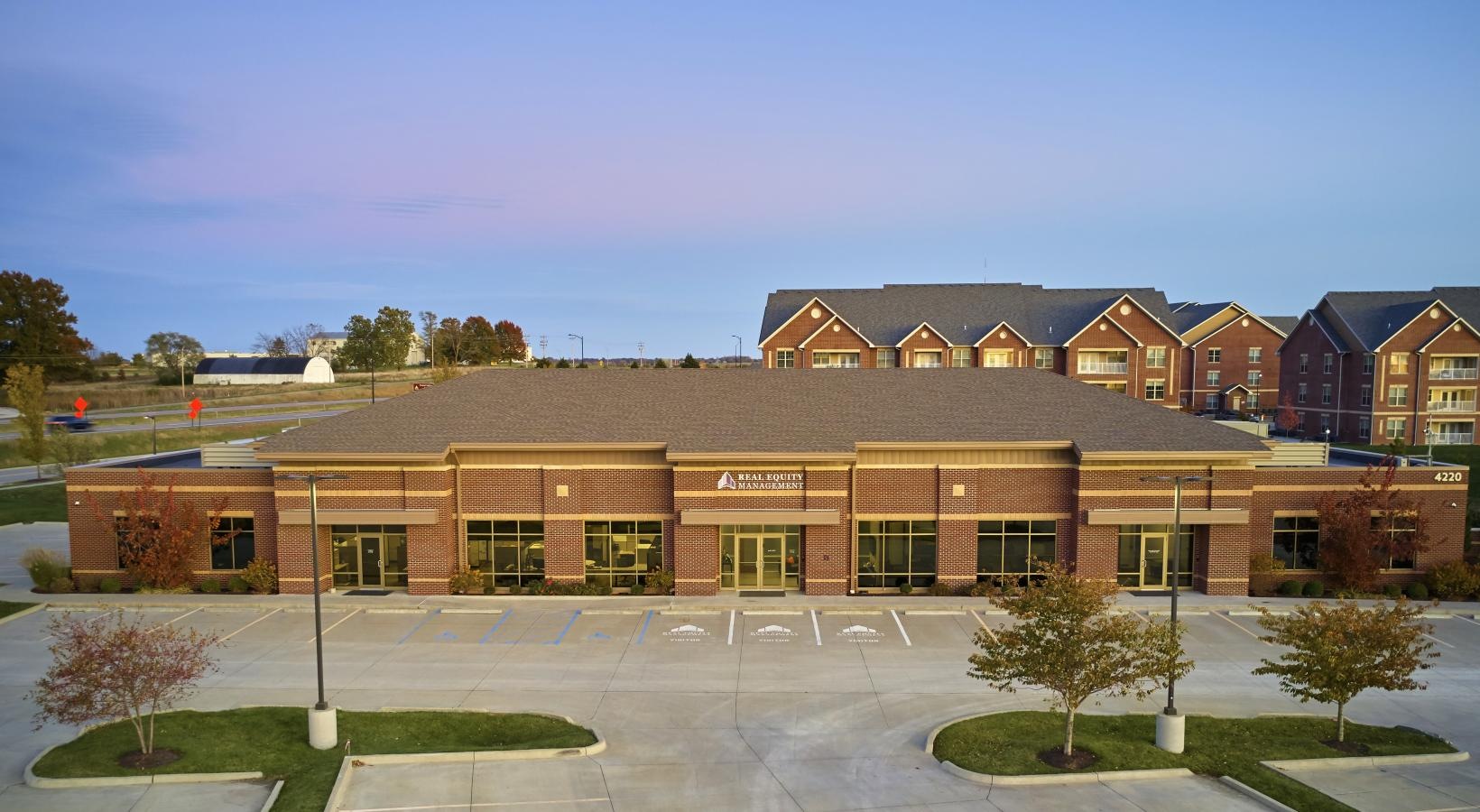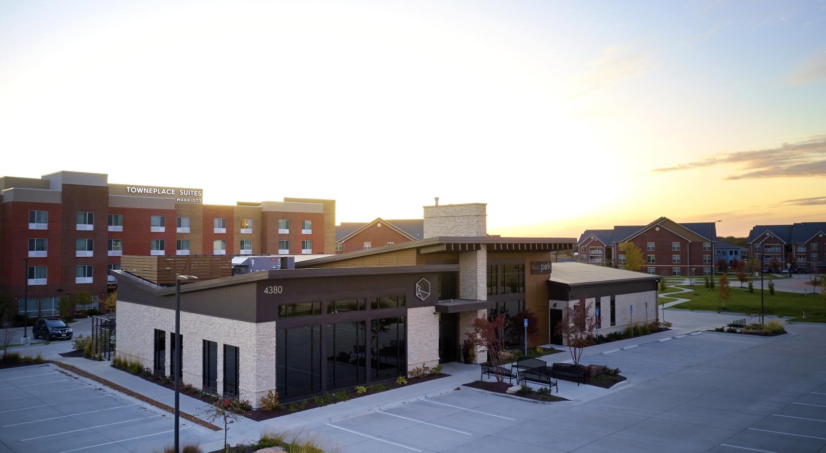• a building with a parking lot