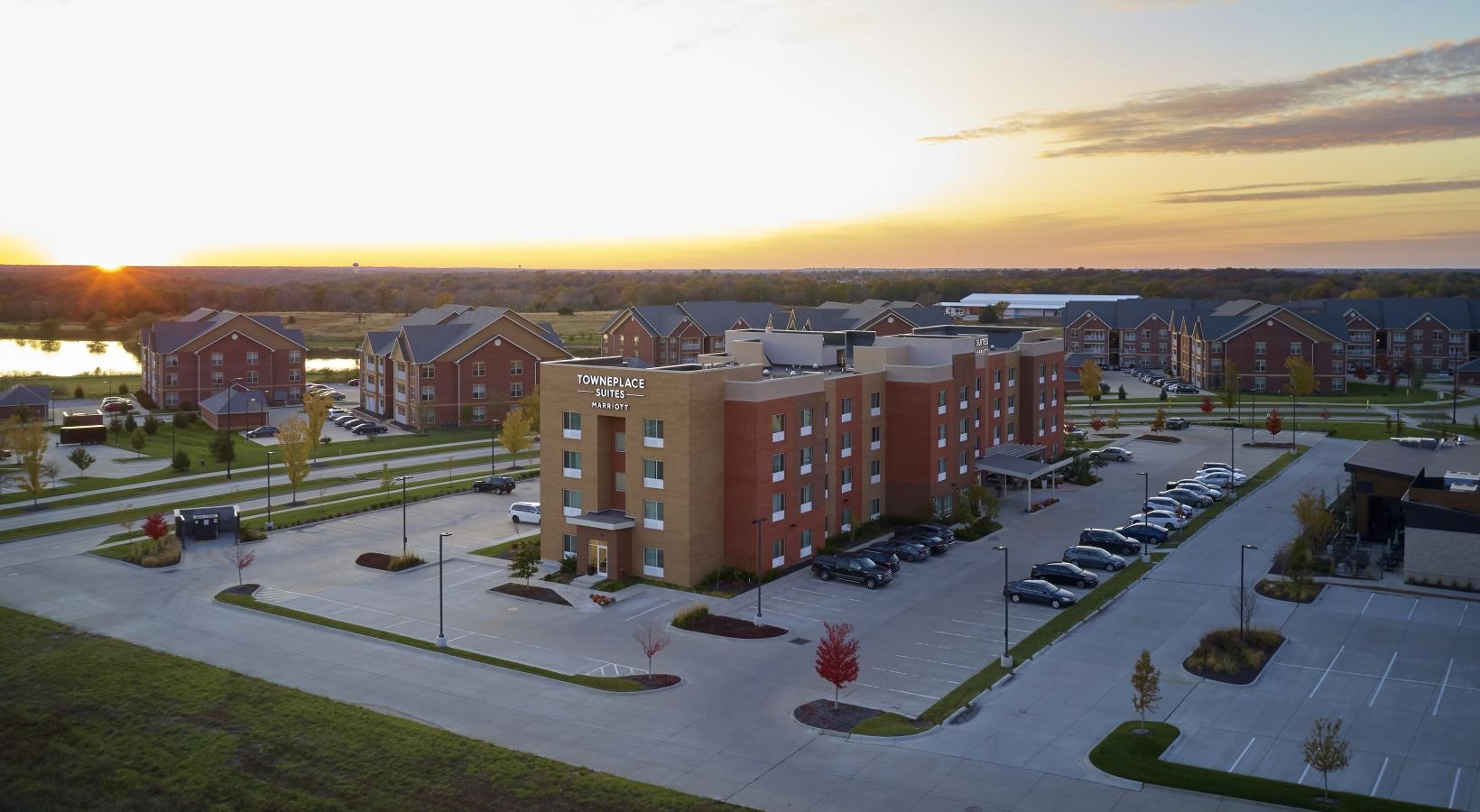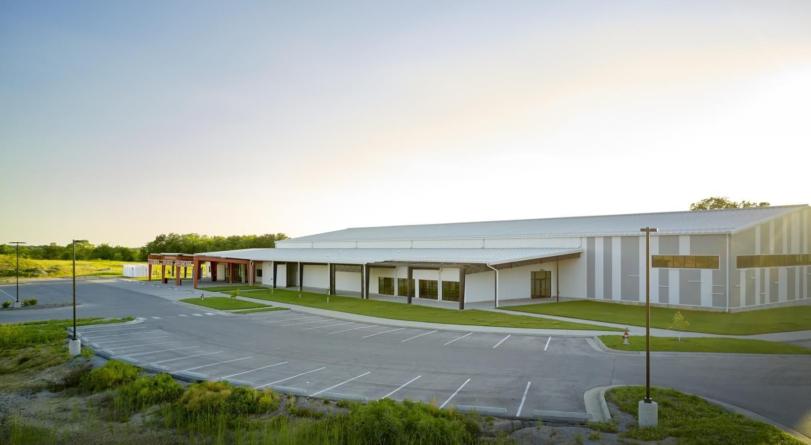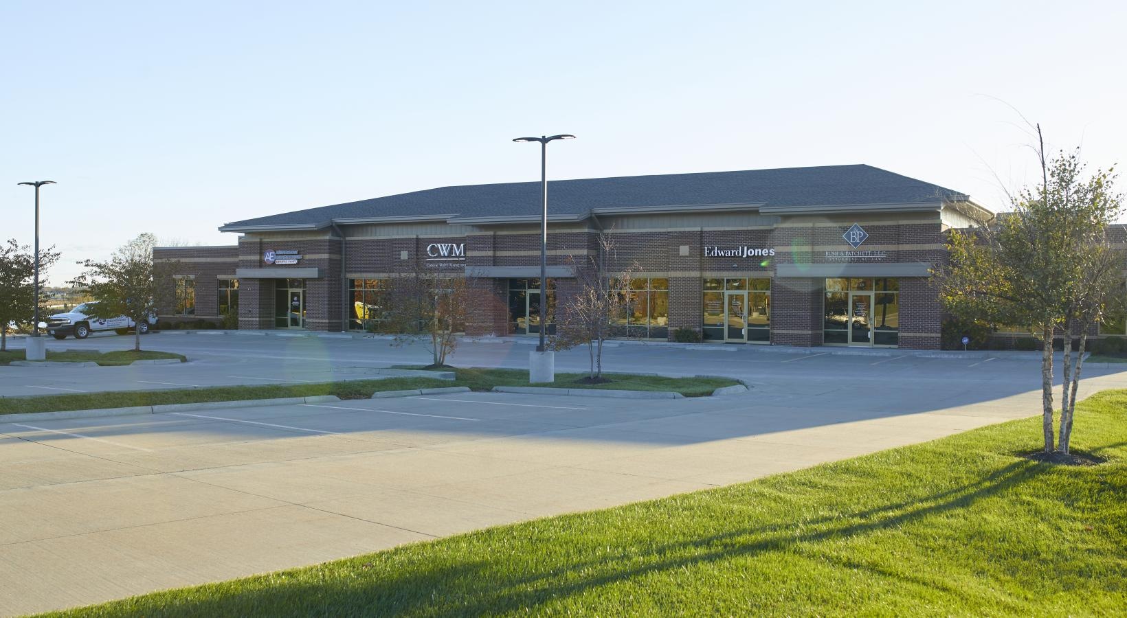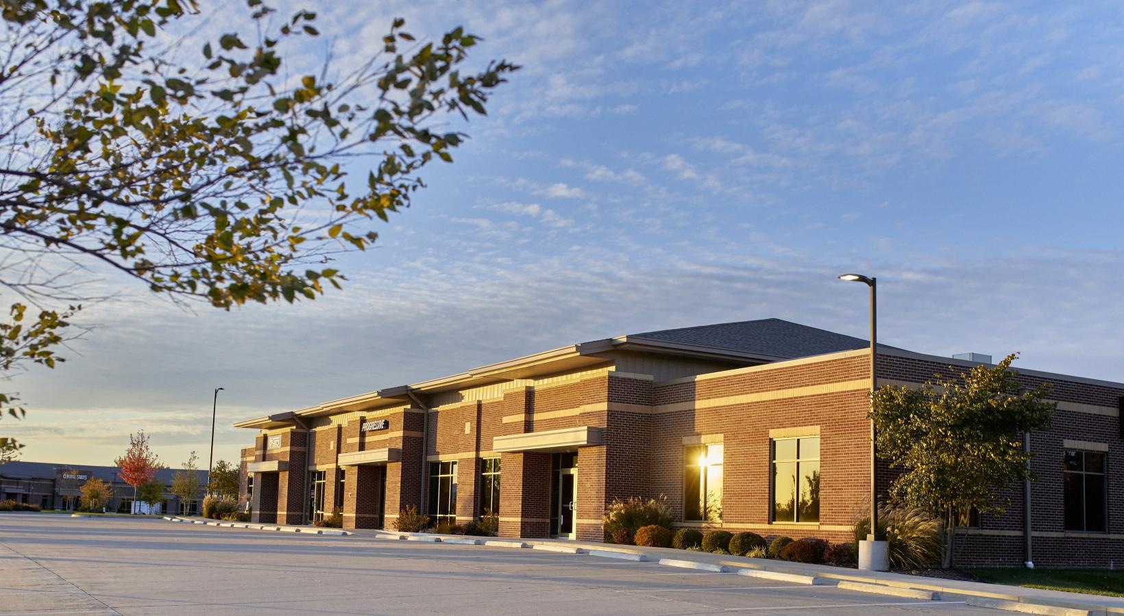 • a building with a parking lot