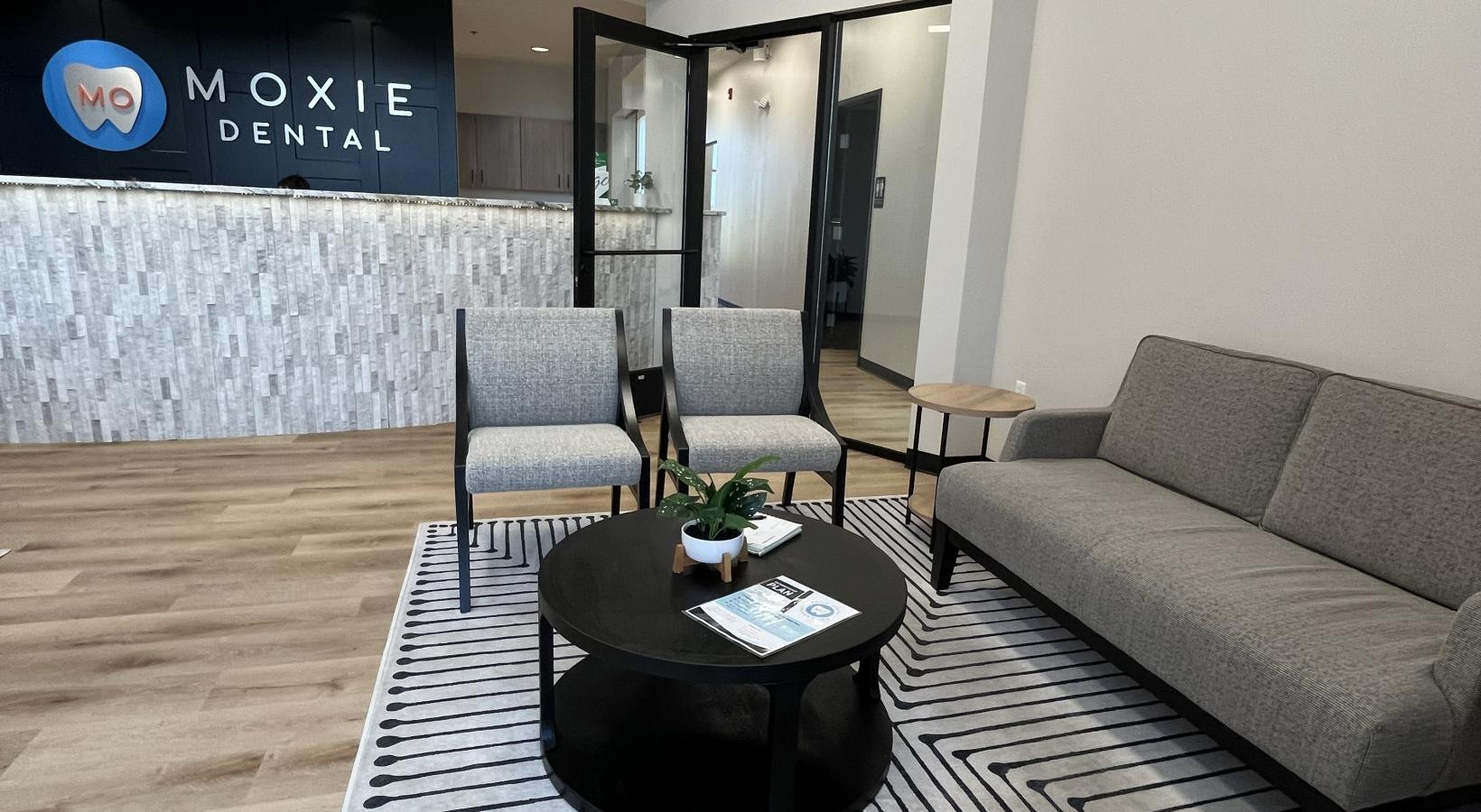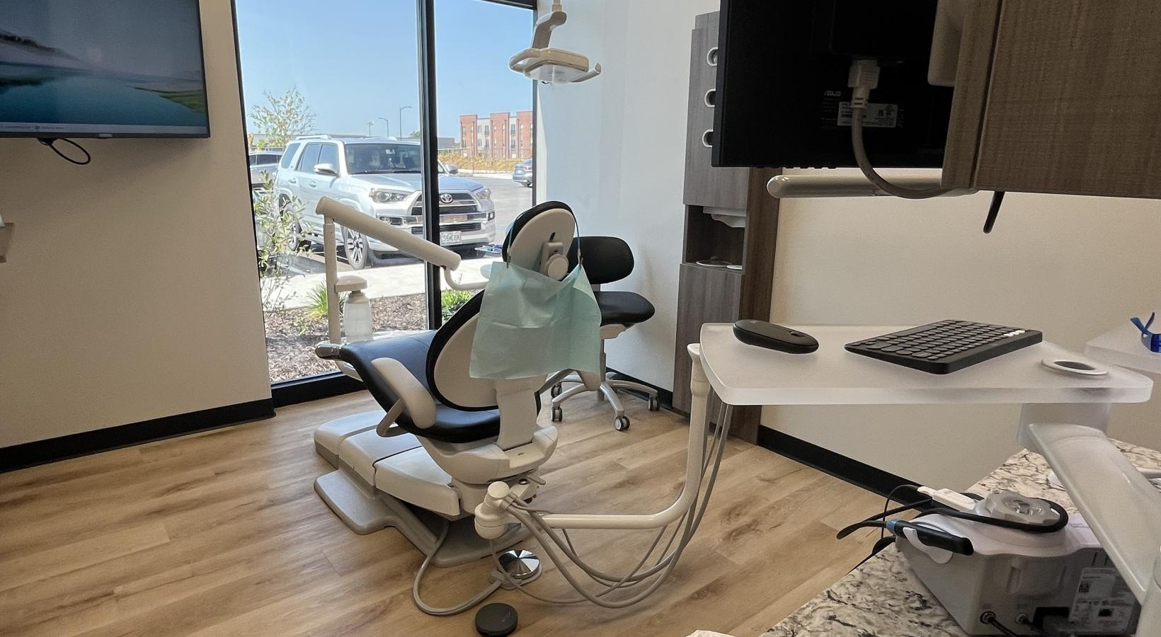 • a dentist office with a tv and window