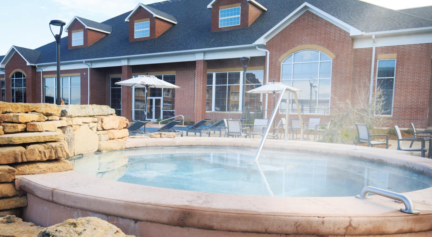 • a hot tub in front of a building