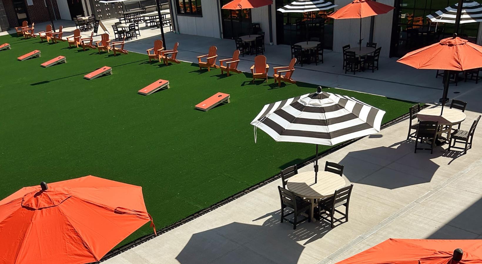 • outdoor seating area with umbrellas