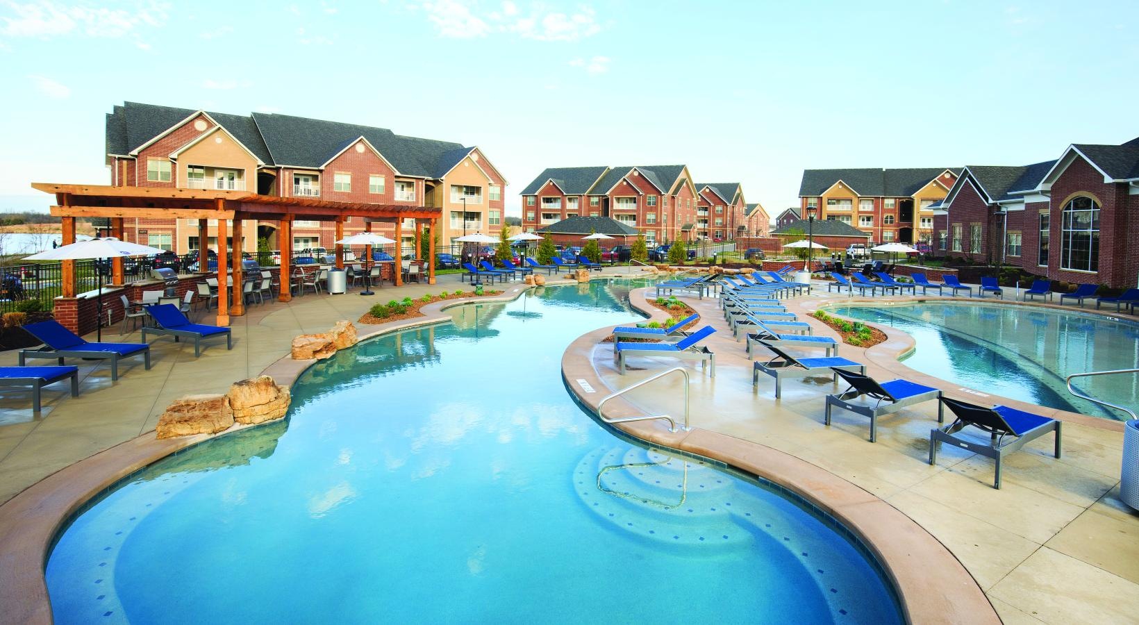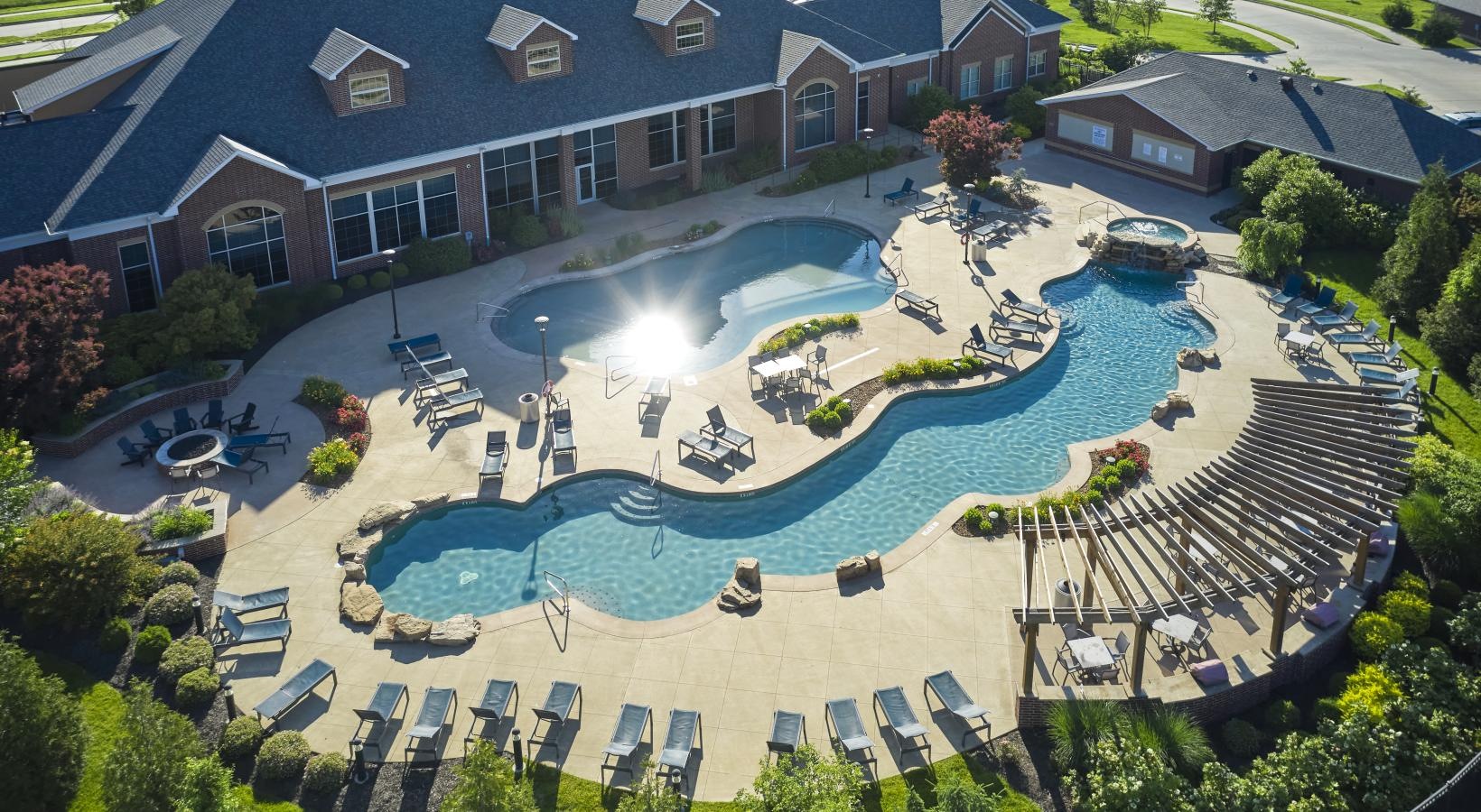 • a large building with a pool