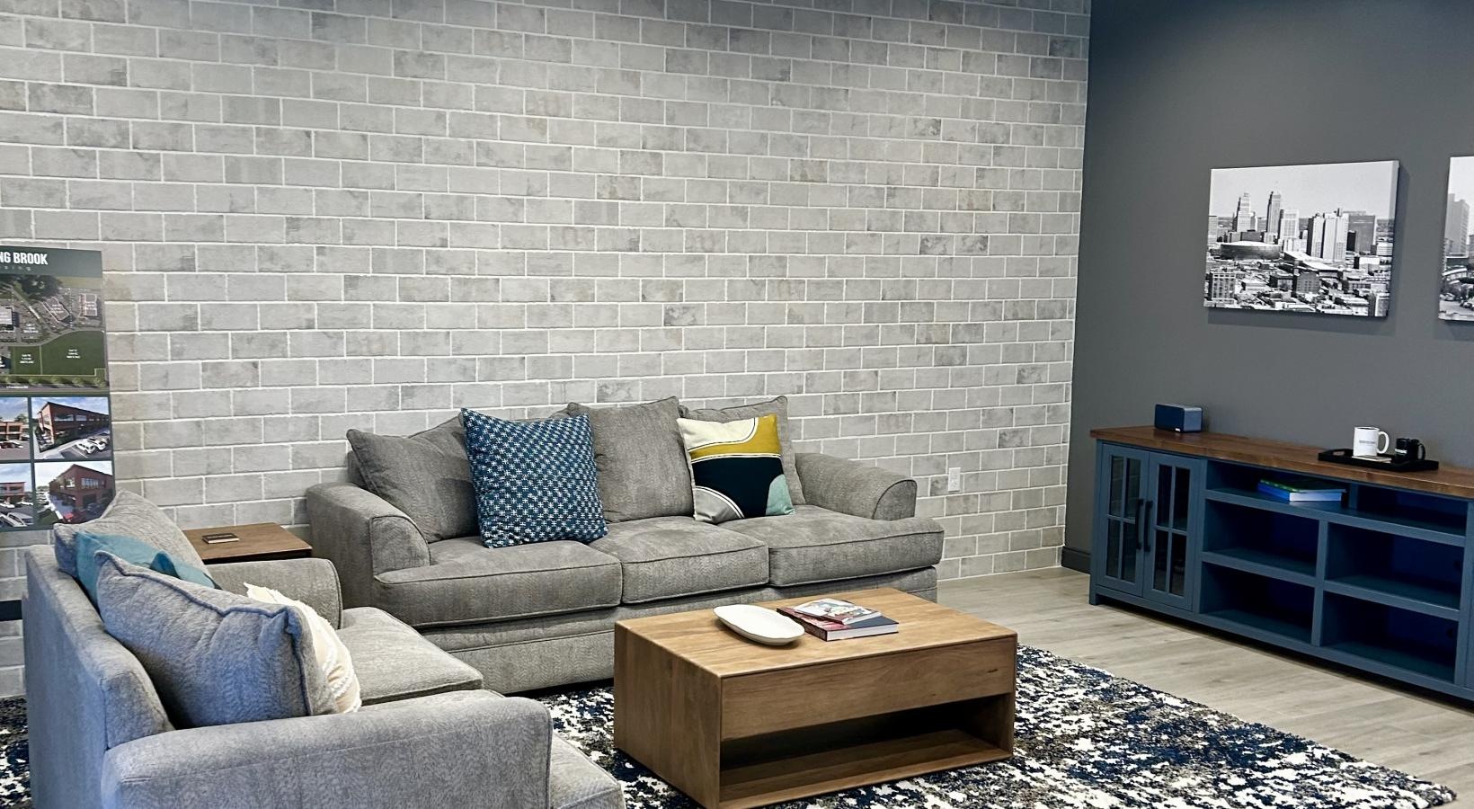 • a lounge with a couch and a coffee table