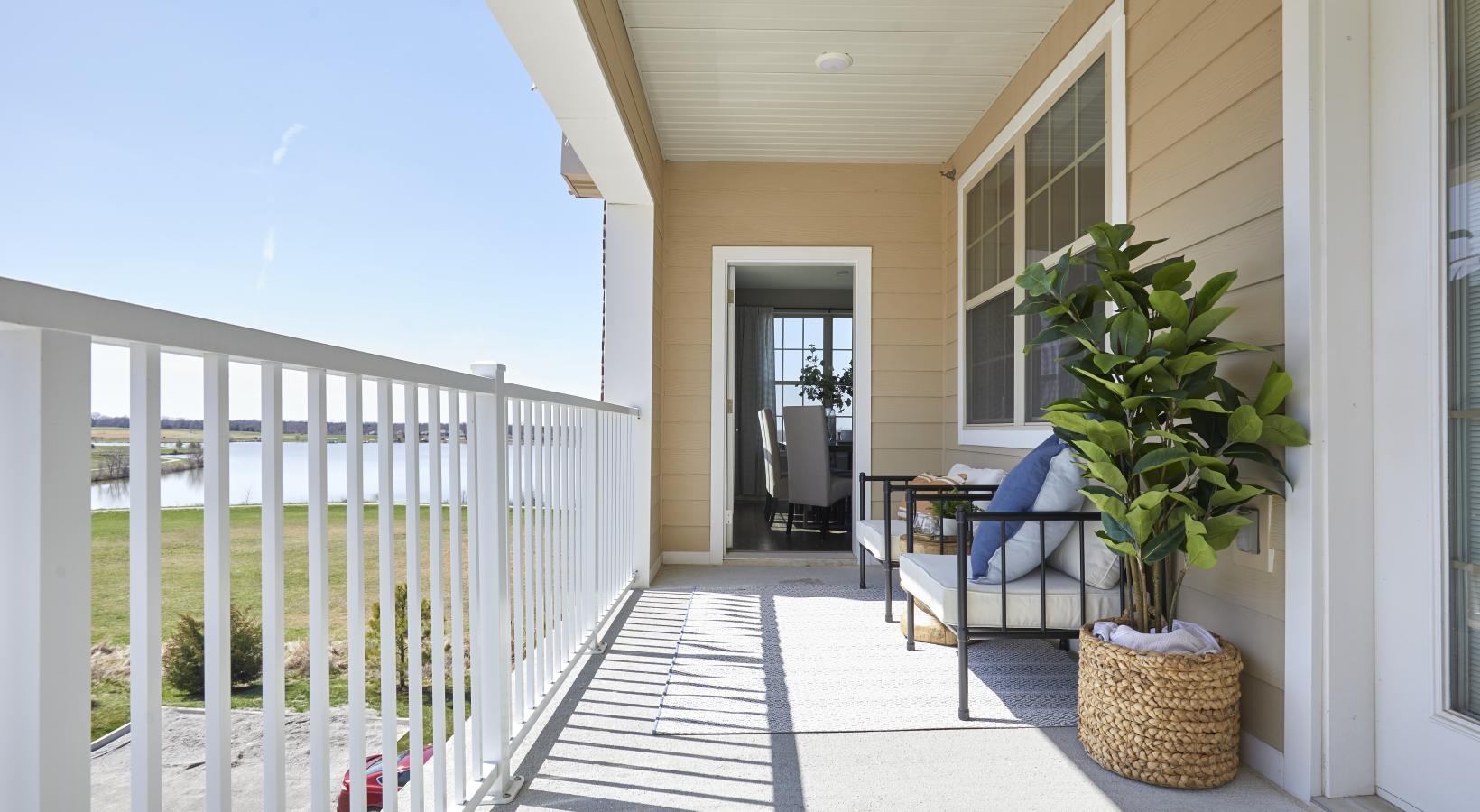 • a porch with a white railing