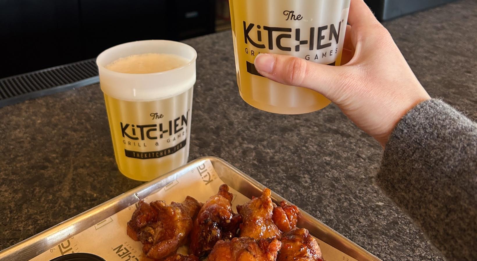 • a person holding a cup and a plate of food