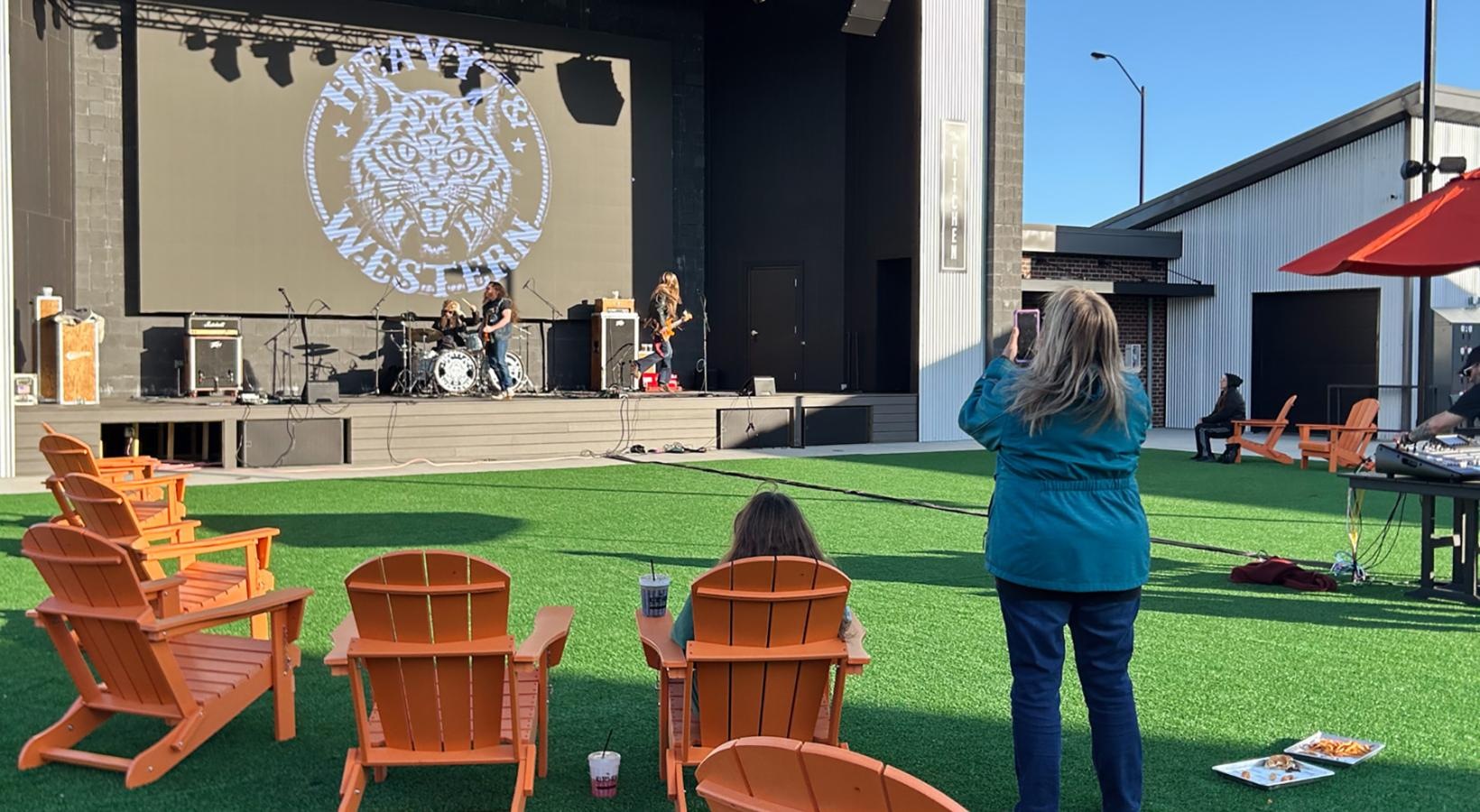 • a seating area with view of a grassy area and stage