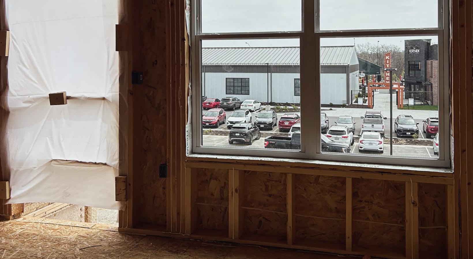 • a construction area with windows