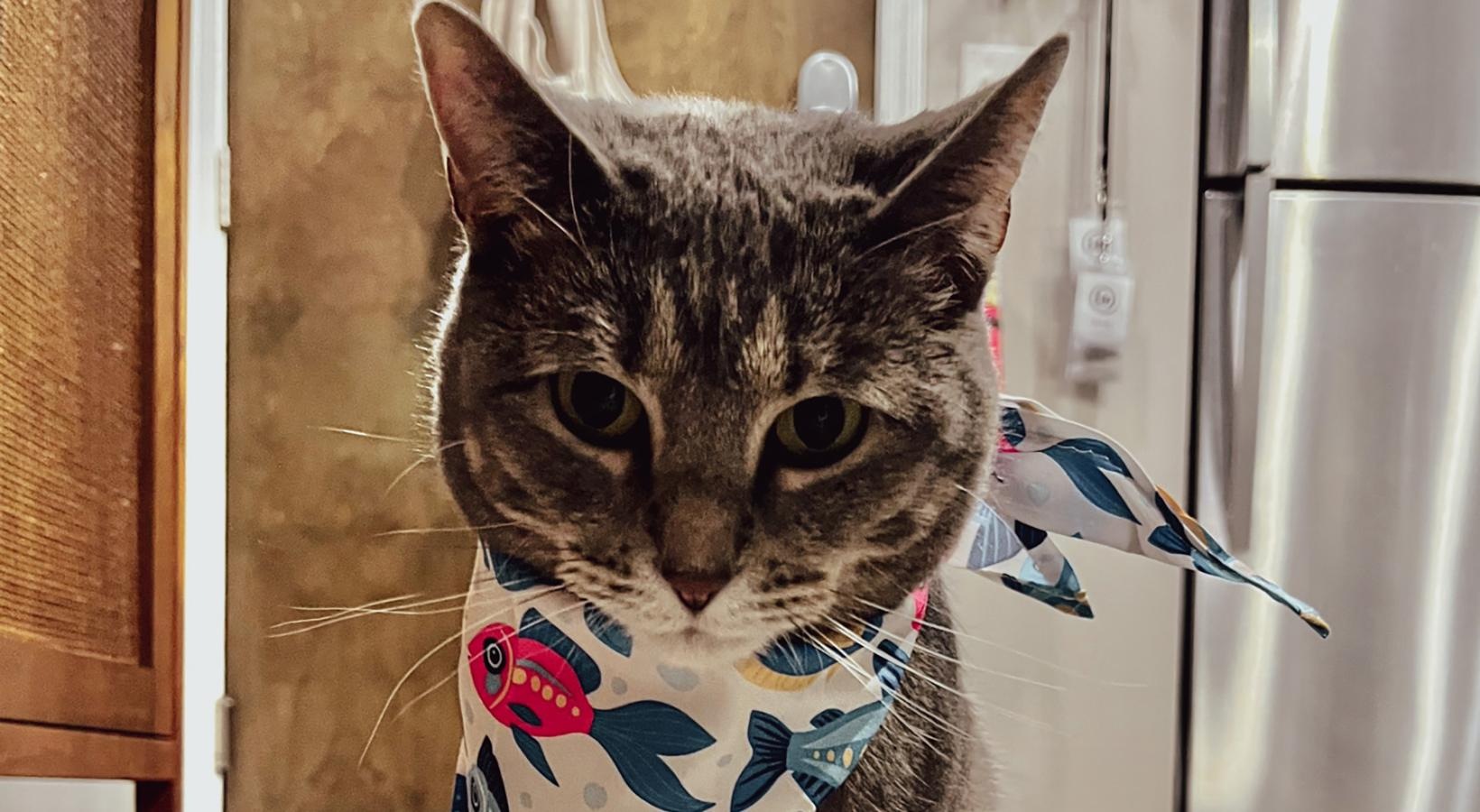 • a cat wearing a bandana