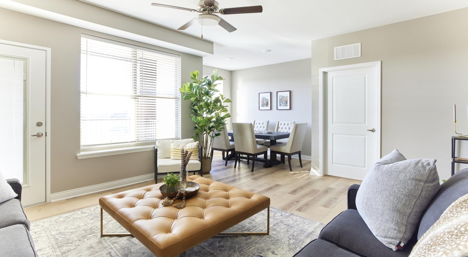 • a living room with a couch and a table