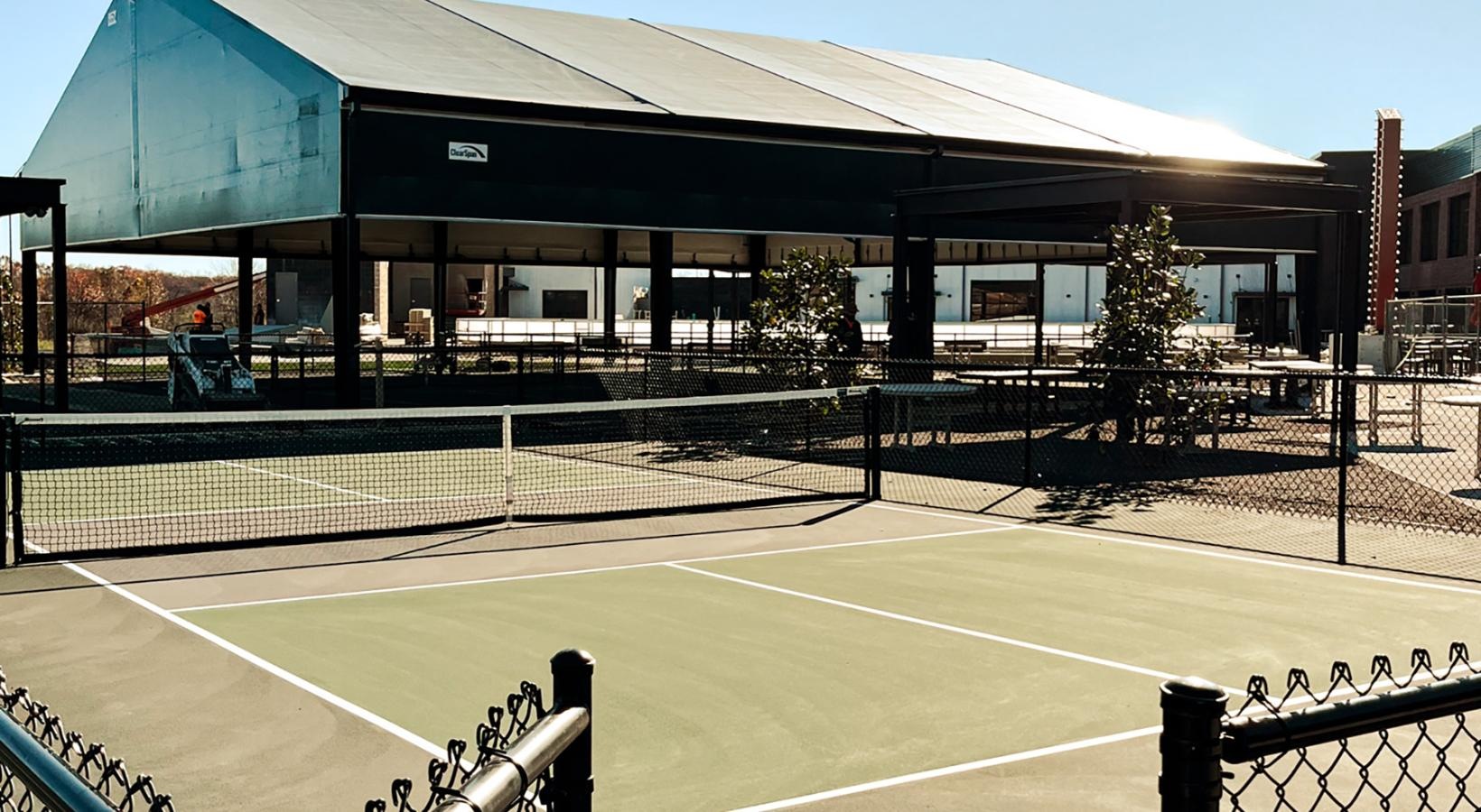 • a tennis court with a fence around it